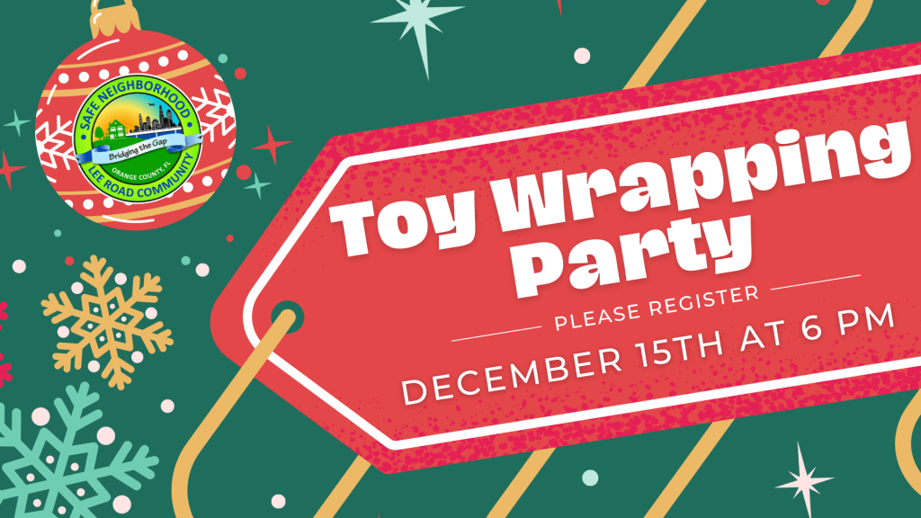 Join the team with Lee Road Safe Neighborhood during the 2023 Toy Drive and Wrapping Party! This will be the first opportunity to volunteer and support the collection, wrapping and distribution preparation ahead of the delivery to the families.